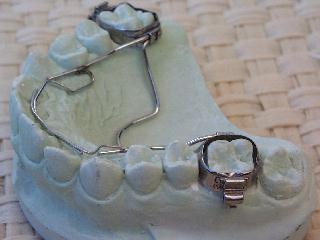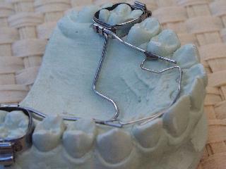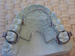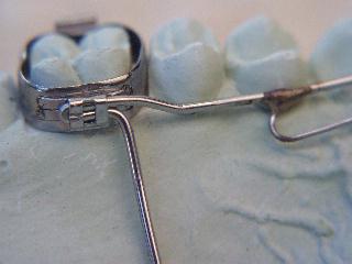 3. Zusätzlich werden gerne, wie auf den Bildern, abgesetzte Overlapping Springs für die Frontzähne aus Elgiloy