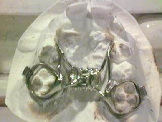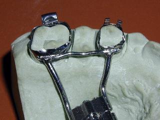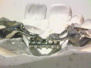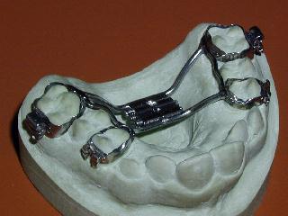 und zwei Prämolarenbändern verschweißt und wird fix auf den Zähnen