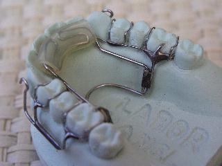 ein OK- Doppelcribgerät mit zusätzlich aufgelöteten Headgear- Röhrchen am Bodywire verwendet. In diese Röhrchen